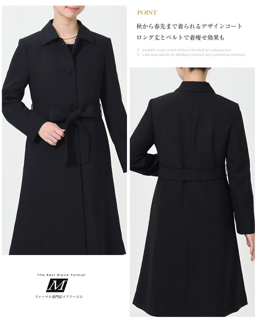※ブラックフォーマルスーツ用の美ブラック生地を使用したフォーマルコート [ママ 服 卒園式][ママ 服 卒業式][コート レディース 冬 送料無料][ミモレ丈][冠婚葬祭][レディース 喪服コート][撥水加工]※2017年11月より撥水加工となりました。