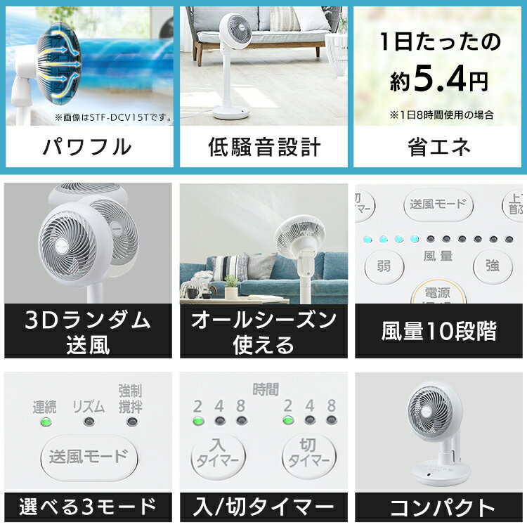 サーキュレーター DCモーター 24畳 首振り 静音 衣類乾燥 換気 扇風機 アイリスオーヤマ コンパクト サーキュレーター扇風機 STF-DC15TC-W ホワイト リモコン タイマー 送風 部屋干し 室内干し 空気循環 タイマー
